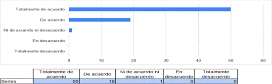 Con los resultados obtenidos en la primera pregunta según la figura 1, se determina que vulneraron derechos a la integridad sexual, por cuanto de 70 abogados encuestados, un 87.14% totalmente de acuerdo que, si existió, esta es la razón por la cual se evidencia la necesidad de investigar respecto a los delitos de integridad sexual. De igual forma esta premisa sobre la importancia de proteger, promover medidas para evitar la vulneración a la libertad y voluntad sexual.