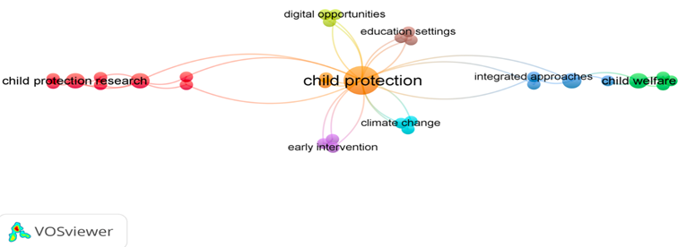 La densidad de conexiones alrededor de este núcleo indica un campo de investigación maduro, con una base teórica compartida por la comunidad académica. La posición central de "child protection" como núcleo principal de la red bibliométrica, valida empíricamente su rol como concepto integrador en la literatura científica contemporánea.