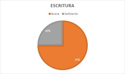 En la figura 2, se evidencia que 75% de los niños logró mejorar su escritura, ya que los docentes, aparte de la realización de la gráfica, sugirieron a los estudiantes expresar su interpretación a nivel escrito, conduciéndolos a desarrollar su producción escrita.