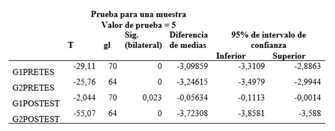 Al existir cambio estadístico en G1 en momento de postest, en comparación con G2 en el mismo momento, el cual permanece en posición neutral, se destaca que el tratamiento aplicado ejerció modificación sobre la gestión de calidad, llevada a cabo por la población estudiad, por lo tanto, se acepta H1 y se rechaza H0.